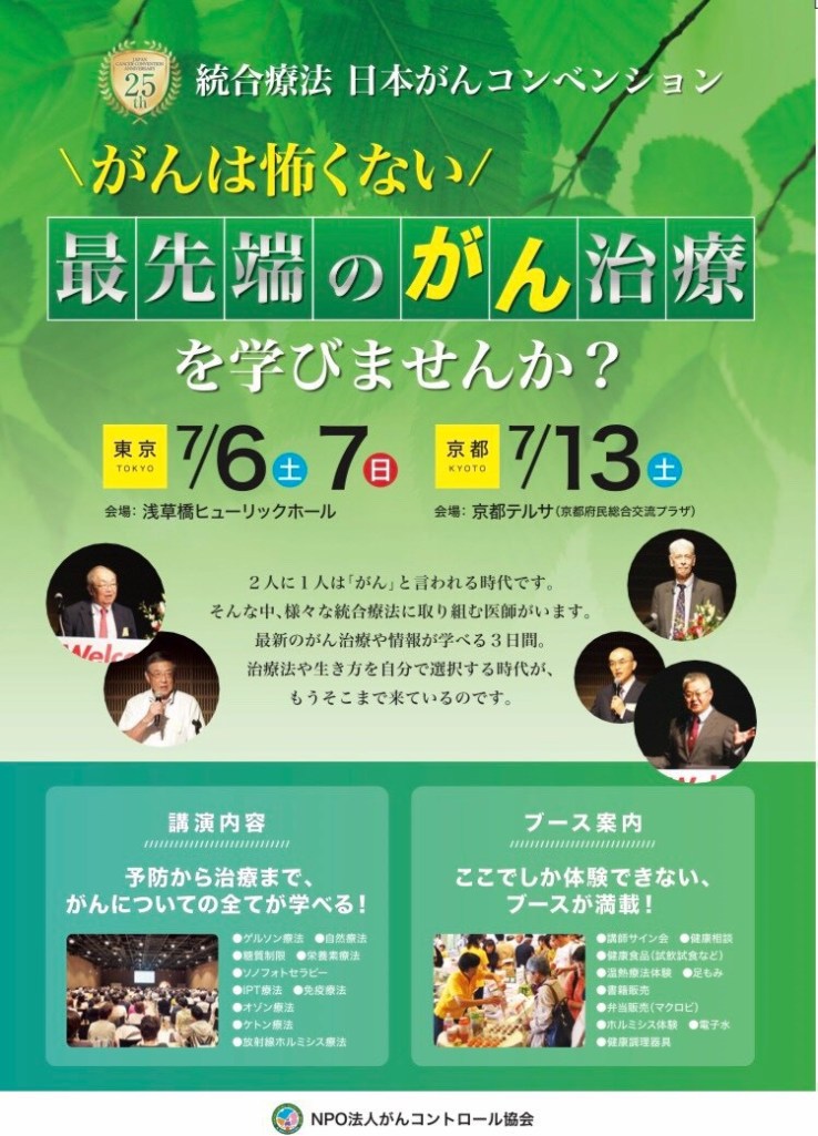 第25回日本がんコンベンション、統合療法を実践されている先生方の最新の情報を聴く事ができます。