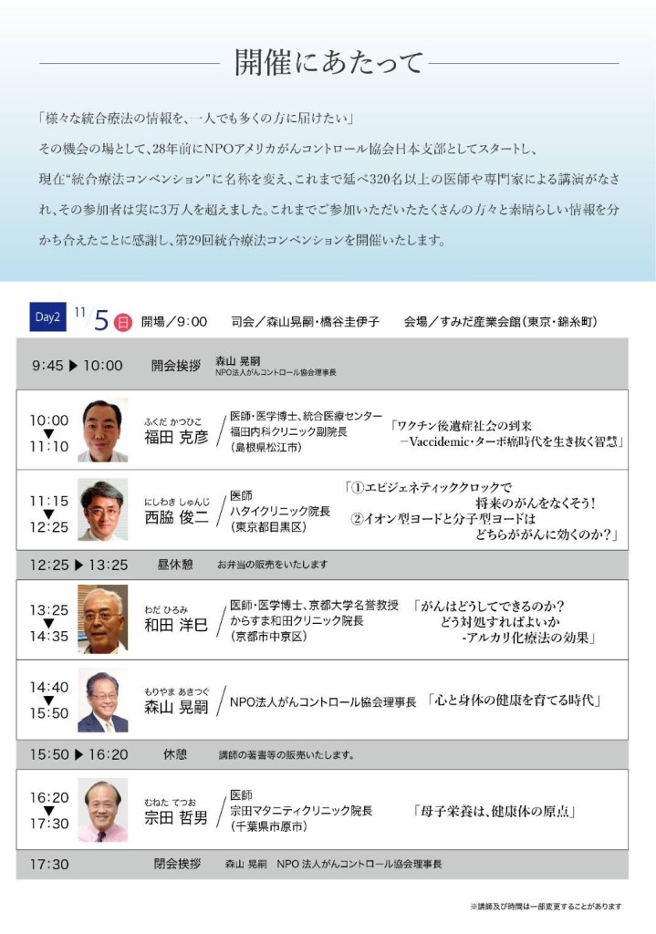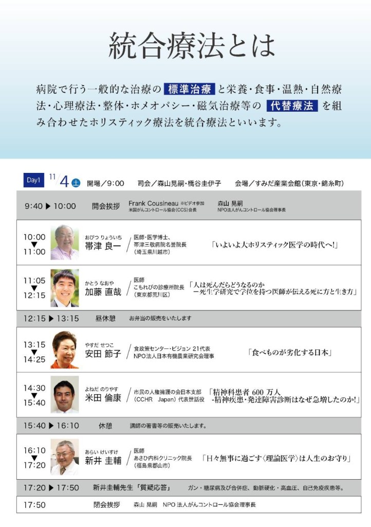 統合療法に取り組む医師、専門家の話が聞ける貴重な機会です。